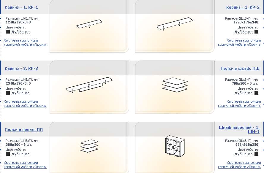 Модули, входящие в состав гостиной и их стоимость:
