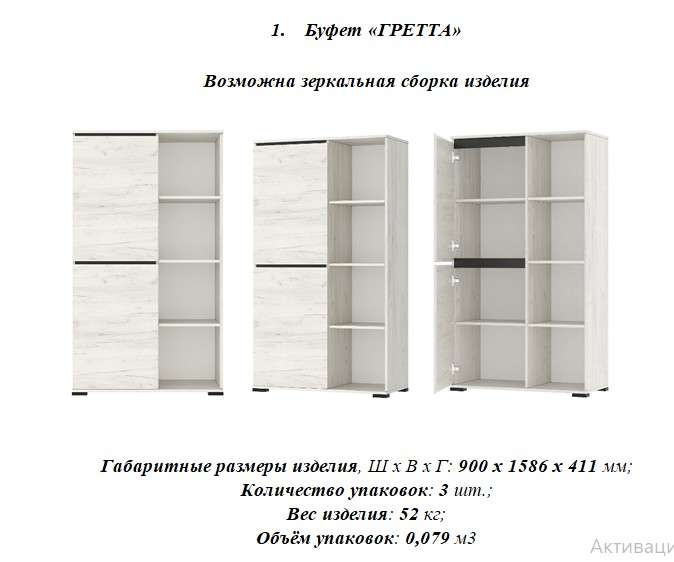Стильный набор мебели «Гретта», имеет широкую функциональность и лаконичный дизайн, гармонично вписывающийся в любой современный интерьер. Различные вариации наборов позволяют закрывать все основные потребительские запросы по обустройству пространства гостиной.