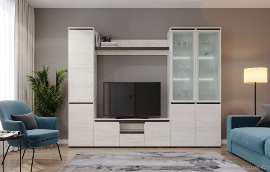 В состав гостиной входят 8 дополняющих друг друга функциональных элементов: