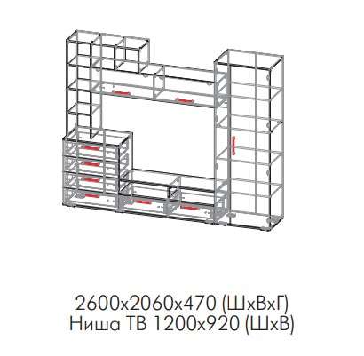 Ниша под ТВ : 1200х920 мм.