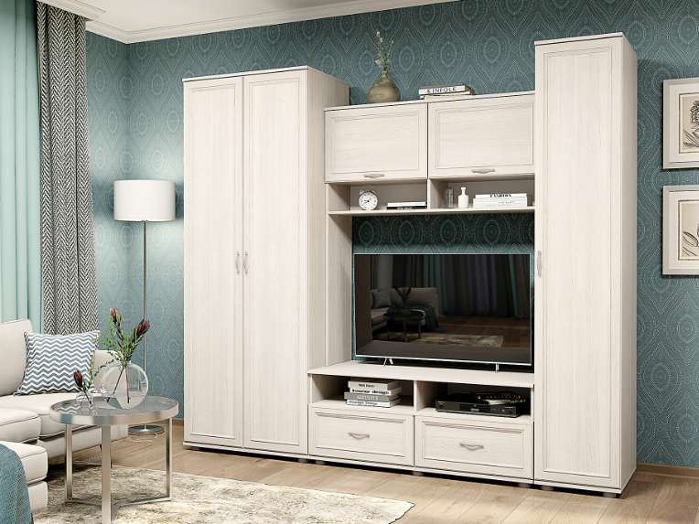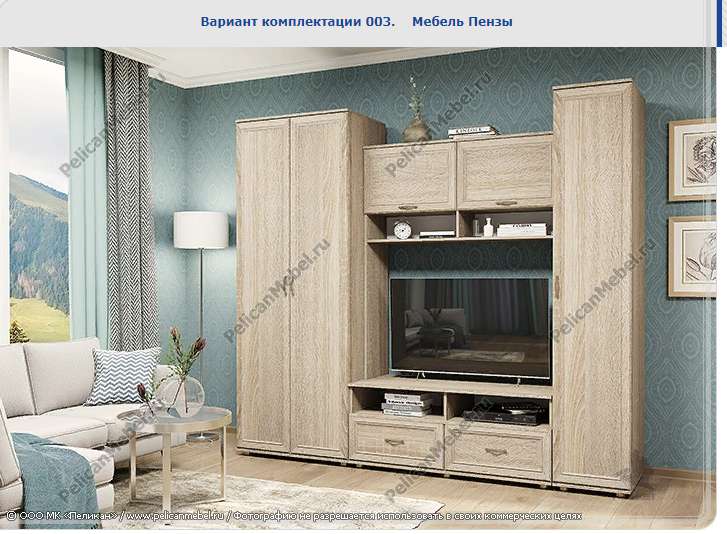 Цена на сайте указана за комплект на первой и второй фото. Размер и комплектация гостиной на фото: 2400х545х2126, (ШхГхВ). Комплектация 003 : – ШУ, ШМ-3, ПУ. Стоимость всех модулей на схеме ниже.