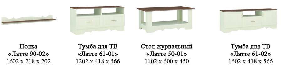 Состав коллекции ЛАТТЕ для гостиной ( ШхГхВ):