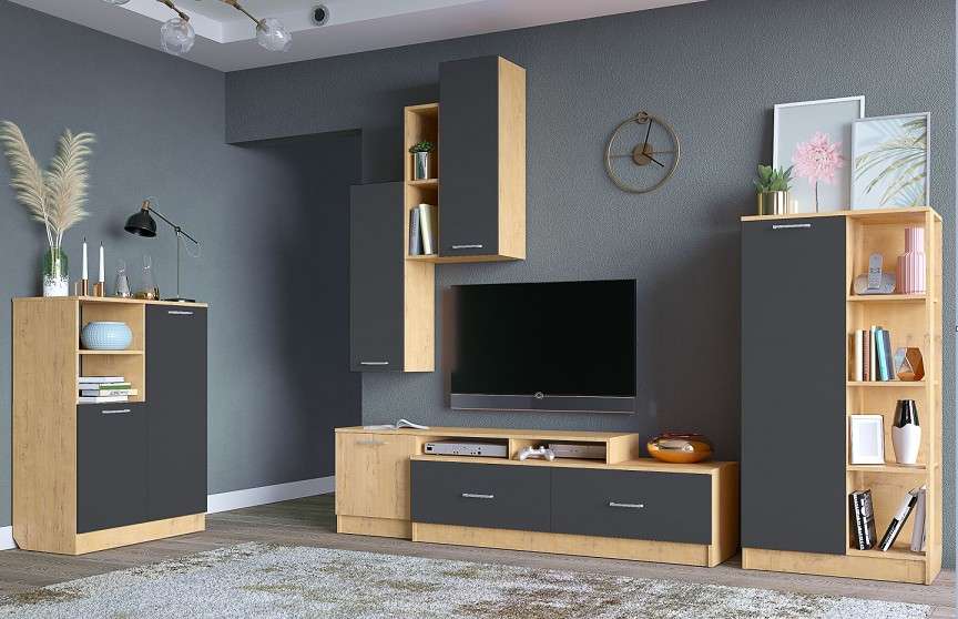 Гостиная «Лего» Дуб бунратти/Антрацит (Премиум)