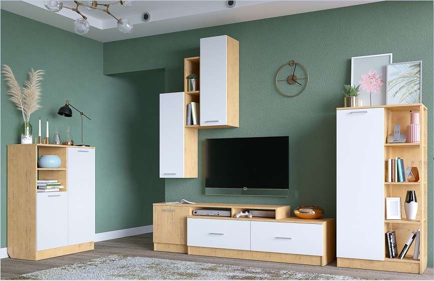 Цена указана за комплект на фото: Тумба, Полка-2, Тумба под ТВ 2, Шкаф напольный (малый).