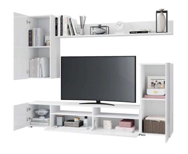 Небольшая,но функциональная гостиная с белыми глянцевыми фасадами. Современный стиль. Компактные размеры.