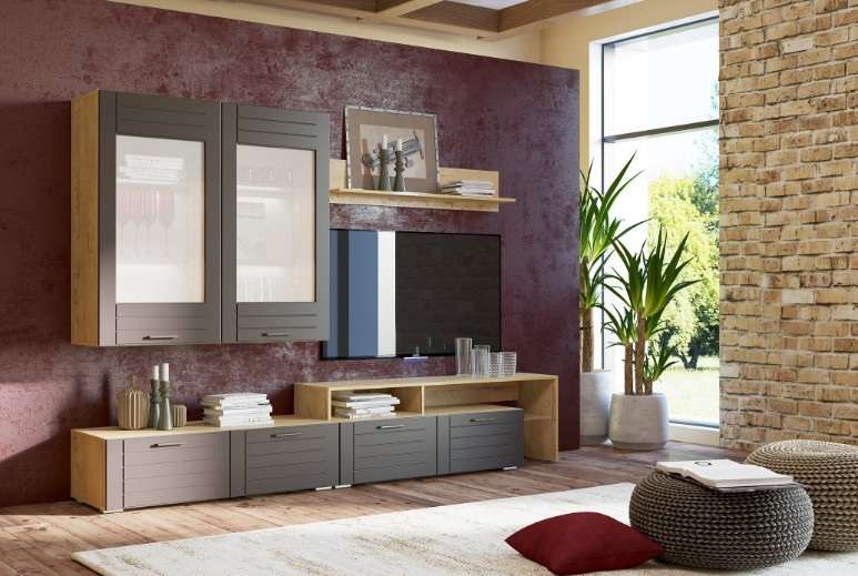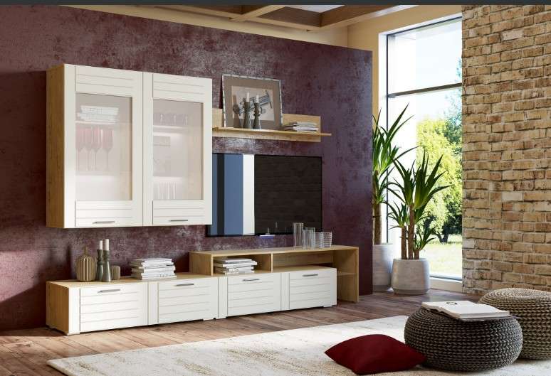 Комплектация №9 из коллекции LIVORNO преобразит интерьер гостиной и сделает ее по-настоящему уютным местом. За стеклянными фасадами навесных шкафов будут выгодно смотреться фарфоровая посуда и книги, а на полке – статуэтки и фоторамки. Если хочется спрятать ценные вещи или одежду, достаточно воспользоваться тумбами.