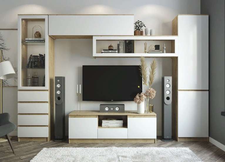 Цена на сайте указана за комплект на первой фото: Стеллаж МС 500.1, ТВ Тумба МТБ 1400.1, Антресоль МАН 1400.1, Шкаф-пенал МШП 1000.1.