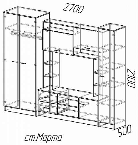 Габариты: 2700(Ш) Х 2100(В) Х 500(Г).