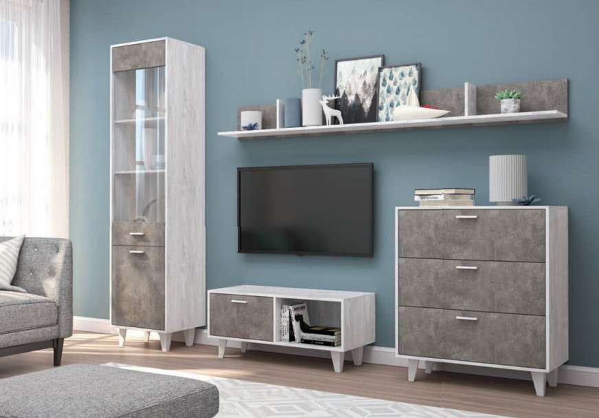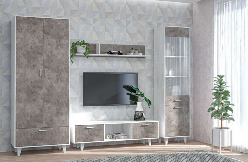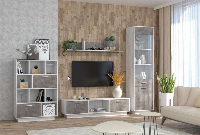 Гостиная модульная «ЭГО» Бетон светлый/ Камень Темный
