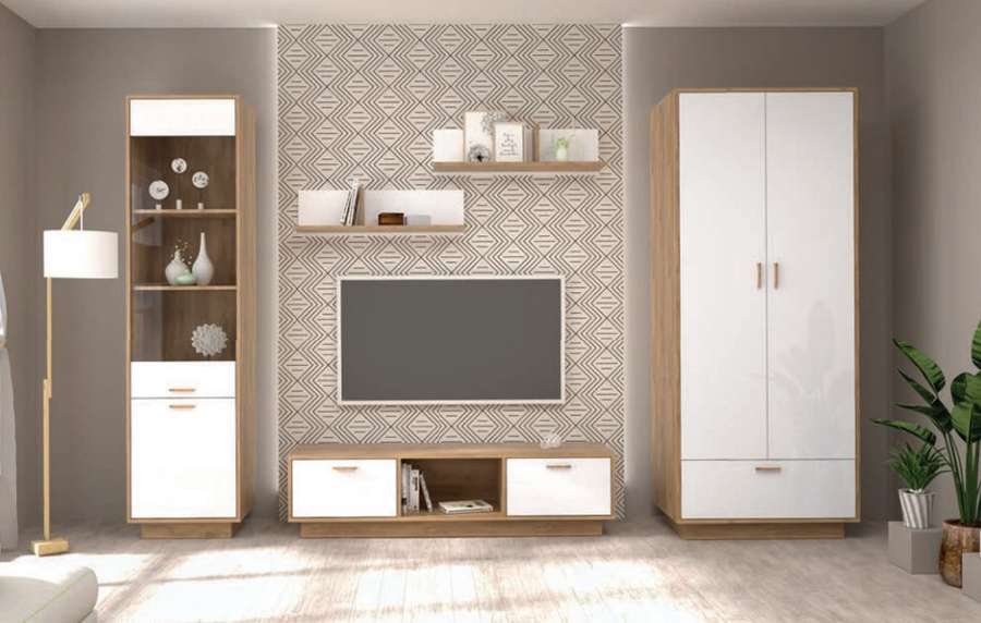 Гостиная модульная «ЭГО» Дуб Крафт Золотой/Белый глянец