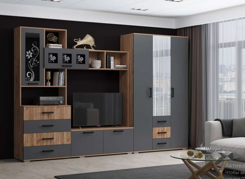 Гостиная «Нота-11» модульная (Графит/Крафт золотой)