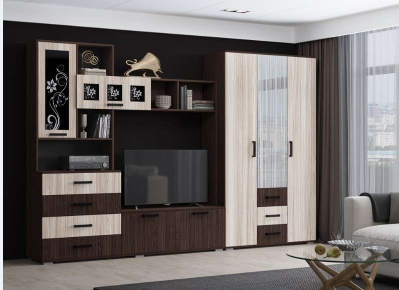 Эта модульная система отличается своей компактностью, легкостью, функциональностью. Стенка подойдет как в малогабаритную квартиру, так и в просторную гостиную.