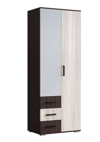 Шкаф двухстворчатый «Нота-11»Имеет 3 ящика, зеркальную дверь. Шкаф оснащен металлической перекладиной и полками для одежды. Материал: ЛДСП. Размер: 800х2120х470,(ШхВхГ). Цвет: ясень шимо светлый/венге, ясень светлый/ясень темный. Срок поставки 2 недели, г. Пенза...