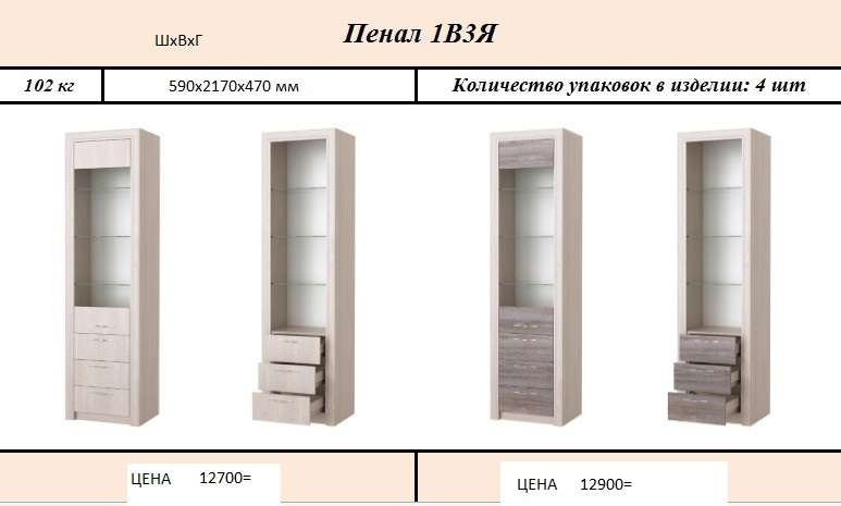 Цена указана за гостиную на первой фото в цвете Ясень Анкор светлый. Состав: -27800 руб.
