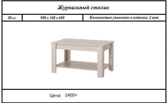 Можно заказать Стол журнальный- 2400 руб. и полки в шкаф 2-х ств. 2С ,стоимость полок в шкаф-2400 руб.