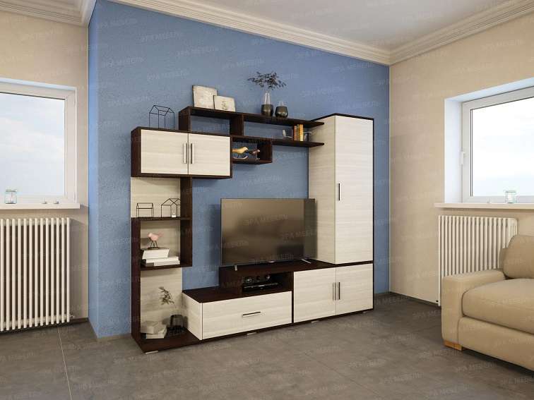 Простая и лаконичная , будет смотреться гармонично в любой гостиной, а вместительность шкафов позволит содержать ваши вещи и предметы в порядке.