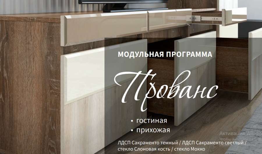 Гостиная «Прованс» - строгость линий, сочетающаяся с необычной компоновкой различных модулей. Основной цвет «Сакраменто тёмный» прекрасно гармонирует с ненавязчивыми вставками оттенка «Мокко» и «Слоновая кость». Модульная система.