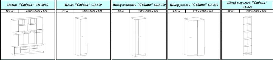 Комплектация: Модуль "Сабина" СМ-2000, Шкаф платяной "Сабина" СШ-700-2шт.