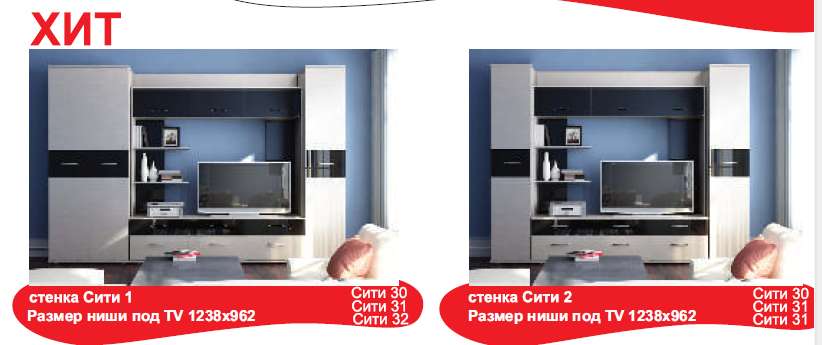 Модульная система мебели для гостиной Сити. Цена на сайте указана за гостиную "СИТИ-2".