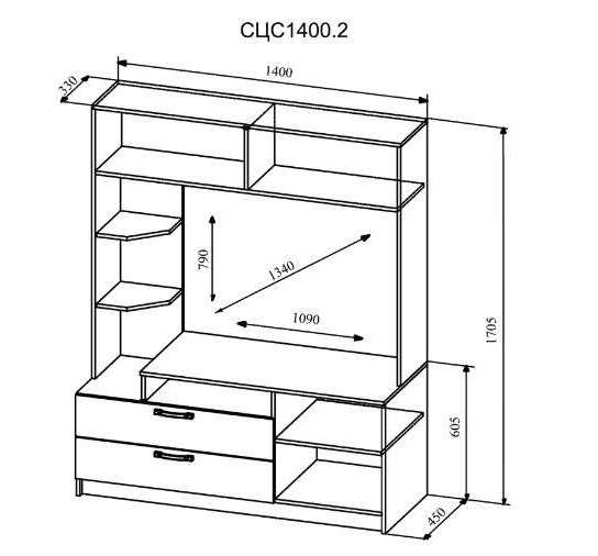 Габаритные размеры: Высота: 1705 мм / Ширина: 1400 мм / Глубина: 450 мм.