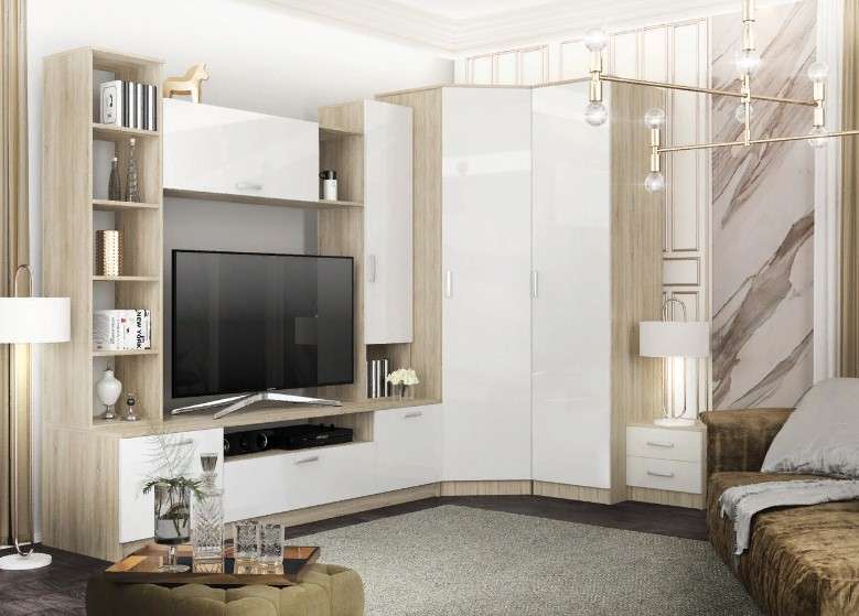 Цена на сайте указана за Комплектацию на фото: Гостиная №4 СЦС 1900.1, Шкаф угловой, Пенал.