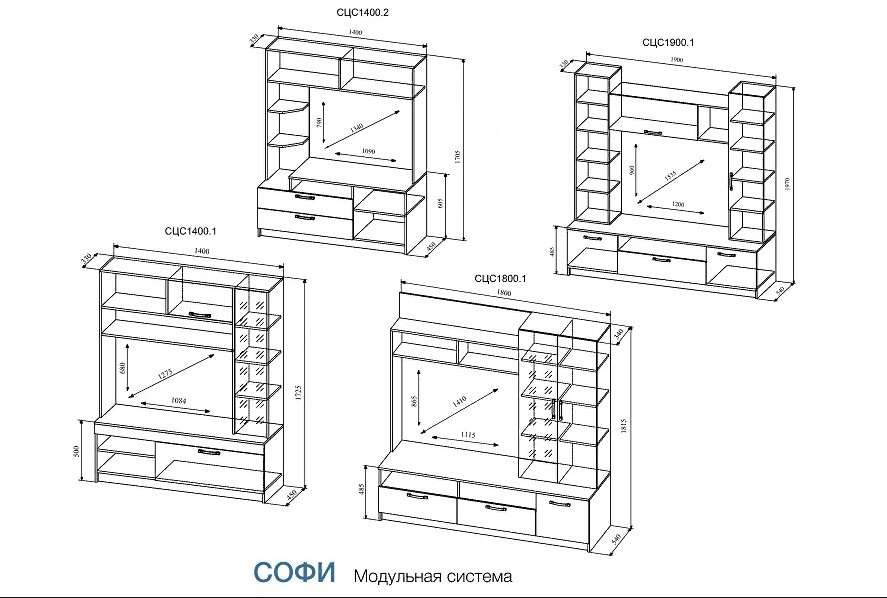 - Гостиная №2 СЦС 1400.2 : 1400х1705х450 мм -8400 руб.