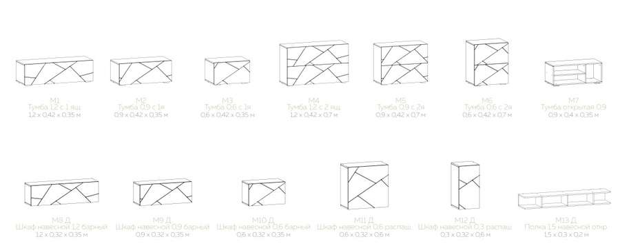 Цена на сайте указана за комплект на фото: Полка навесная открытая М16, Полка навесная открытая Д. 0.9 м -2шт., Шкаф навесной барный Д. 0.9 м-2шт., Тумба открытая Д. 0.9 м, Тумба Д. 0.9 м с 1-м ящиком- 2шт.
