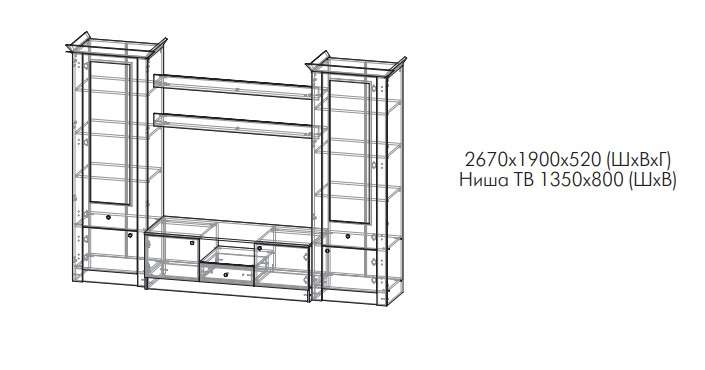 - Ниша под ТВ : 1350х800 мм