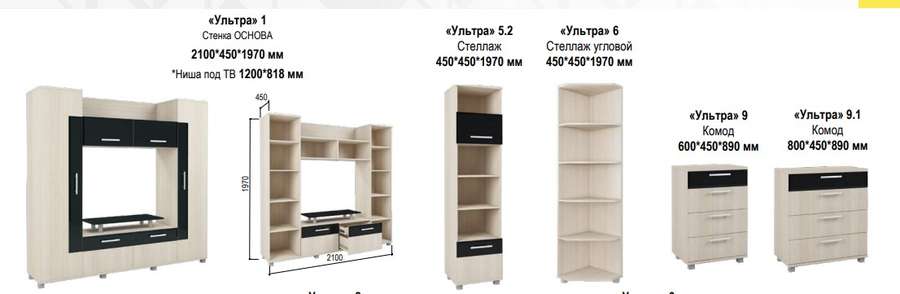 Модульная система «Ультра» - это оптимальный вариант для хранения множества вещей: от мелочей до предметов гардероба. Хотите приобрести такую мебель? Тогда остановите свой взгляд на модели «Ультра». Современный дизайн, оригинальная фурнитура, интересное цветовое-фактурное решение модульной системы создадут уютный и неповторимый интерьер в Вашей гостиной.