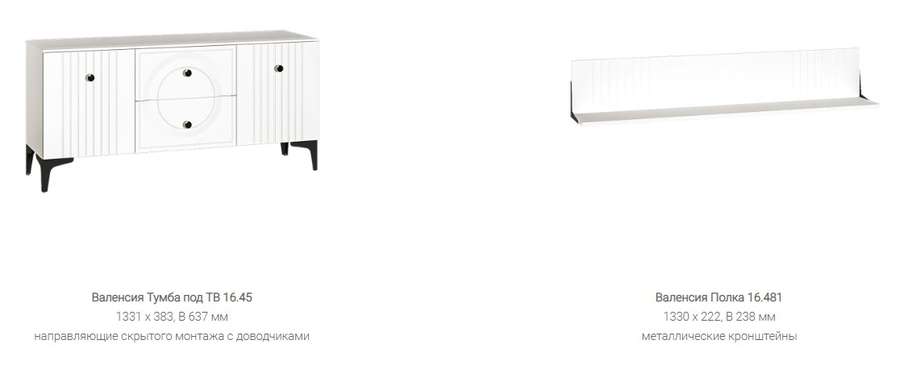 На сайте указана цена за гостиную на первой фото: Два Шкаф-пенала 13.218, Тумба ТВ 16.45 и Полка 16.481.