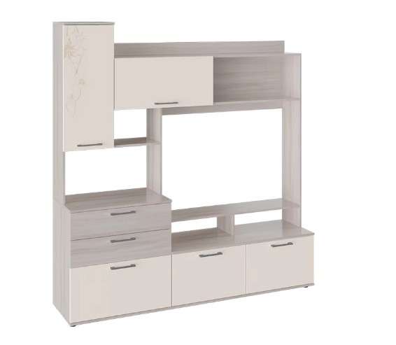 Модульная гостиная «Марта» (Ясень шимо/Сатин матовый с рисунком)