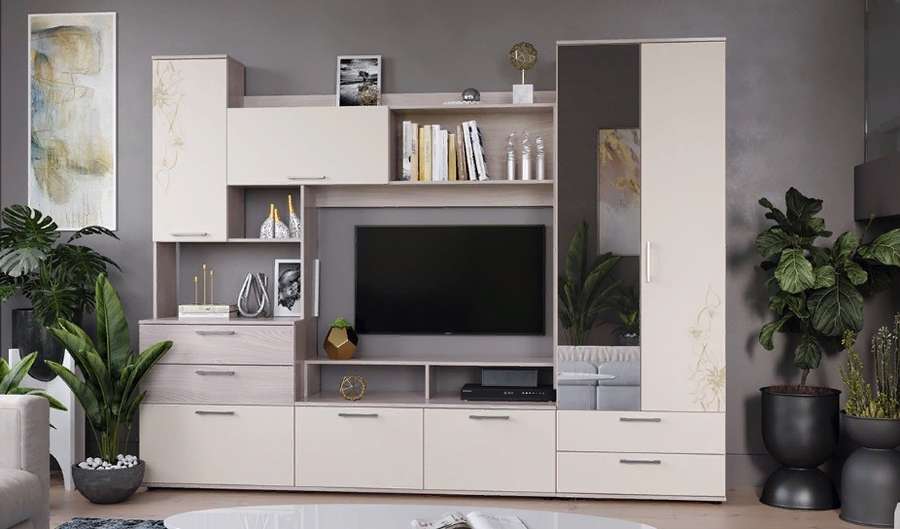 Мебельный комплект этой гостиной состоит из секции комбинированной и шкафа комбинированного.