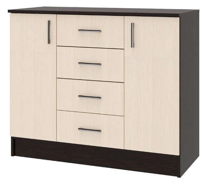 Комод "София" К1000 2Д комбинированный для хранения белья, с 2-мя створками и с 4-мя выдвижными ящиками на роликовых направляющих.