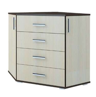 Комод "София" угловой комбинированный для хранения белья, 2-х створчатый с 4-мя выдвижными ящиками на роликовых направляющих.
