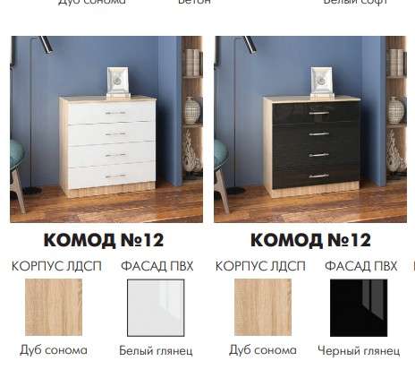- Дуб Сонома/ Белый глянец, Дуб Сонома/ Черный глянец.