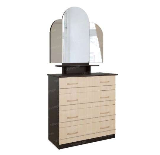 Деликатно оформленный, компактный комод №4 выполняет сразу две функции: небольшого шкафа и туалетного столика. Внутри него можно разложить одежду и некрупные вещи, сортируя их по назначению и частоте использования. На столешнице найдется место для косметики и различных мелких аксессуаров. Очень полезное дополнение — миниатюрное трюмо, в которое можно смотреться, прихорашиваясь и наряжаясь.