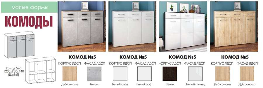 - Дуб Сонома/Бетон, Белый Софт, Венге/ Белый глянец, Дуб сонома.