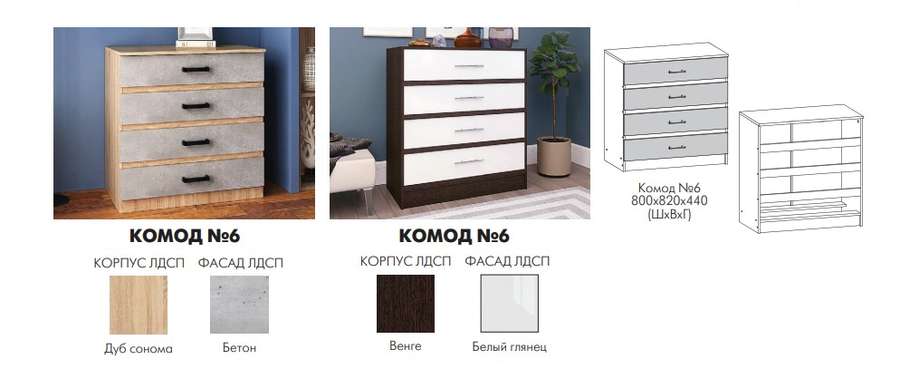 - Дуб Сонома/Бетон, Венге/ Белый глянец.