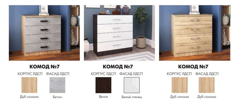 - Дуб Сонома/Бетон, Венге/ Белый глянец, Дуб Сонома.