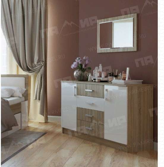 Очень красивый вместительный комод.Фасады, выполненные в цвете «Белый глянец» комбинируются с фасадом и корпусом «Дуб сонома».