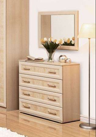 Комод из модульной спальни Гармония прекрасно впишется в классический интерьер. Имеет четыре ящика с направляющими полного выдвижения.