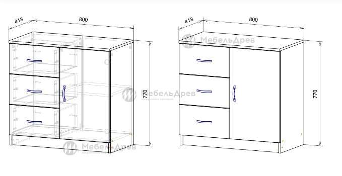 Комод, который успешно впишется в интерьер любой комнаты: прихожей, гостиной, спальни. Хорошая альтернатива габаритному шкафу в маленькой спальне или полноценный предмет мебели в прихожей. Вместительные выдвижные ящики позволят держать в порядке все мелкие вещи, бижутерию, аксессуары, белье, а глубокая секция с полками за распашными дверцами — хорошее функциональное пространство для более крупных вещей.