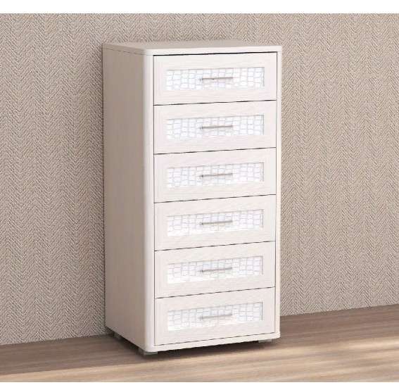 Комод с шестью ящиками - многофункциональный, удобный предмет мебели, который придаст интерьеру комнаты элегантность, подчеркнёт стиль и при этом не займёт много места. В ящиках-Шариковые направляющие полного выдвижения.