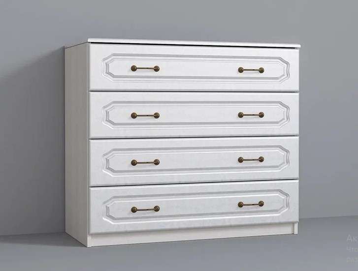 Комод с четырьмя вместительными ящиками - универсальный предмет интерьера. Его можно использовать как при оформлении спальни, так и детской, гостиной, прихожей. Он может входить в состав гарнитура или стоять как отдельный арт-объект. В ящиках -Шариковые направляющие полного выдвижения.
