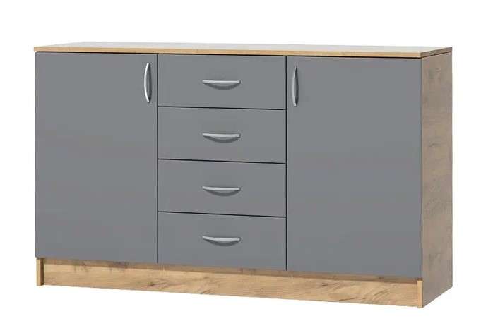 Комод «КЭТ-7» 2 створки/ 4 Ящ. Дуб крафт золотой/Миндаль, Графит