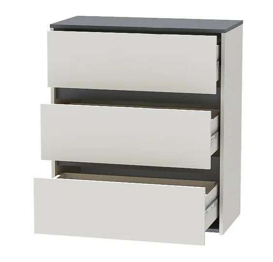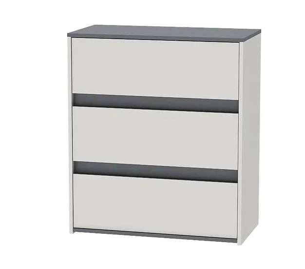 Оригинальный комод с тремя вместительными ящиками, входящий в стильную серию модульной мебели для спален «КЭТ-9» для хранения одежды и различных вещей.