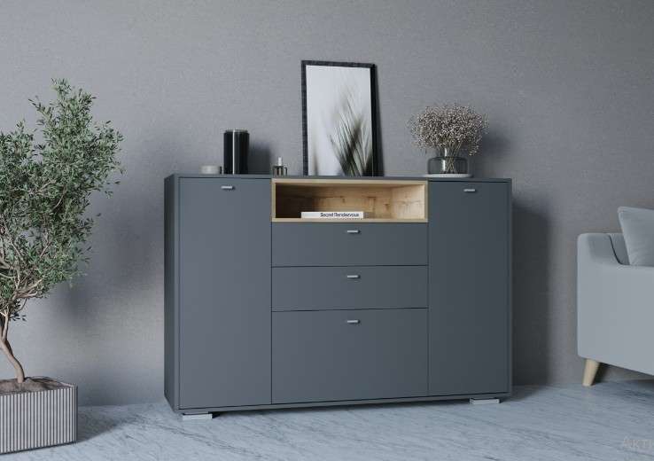 Стильный и привлекательный комод «Ланс» станет отличным решением для помещений и квартир. Комод «Ланс» поистине уникален, он сочетает в себе спокойствие и нежность, комфорт и удобство, удовольствие и приятные эмоции. Интерьер благодаря комоду станет гармоничным и интересным. Насыщенные оттенки белого, графита и дуба бунратти, стильные детали и гладкие фасады не могут не радовать новых владельцев.