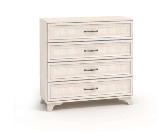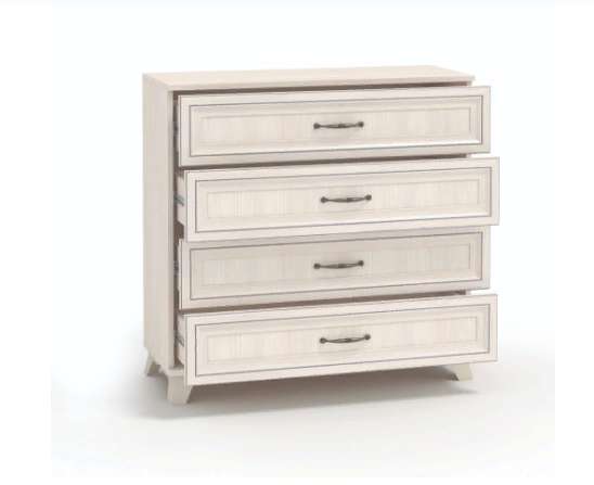 Широкий вместительный комод с четырьмя ящиками — полезный элемент хранения вещей в гостиной или спальне. Вместительная, и в то же время компактная— эта модель элегантное решение для разных типов интерьера.