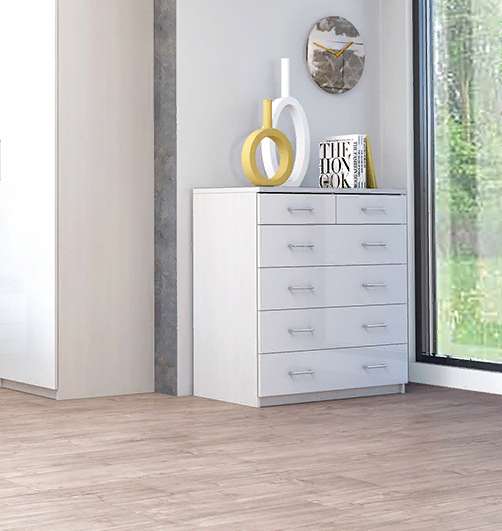 Комод с 6 ящиками «КЭТ-6» Бодега/Белый глянец