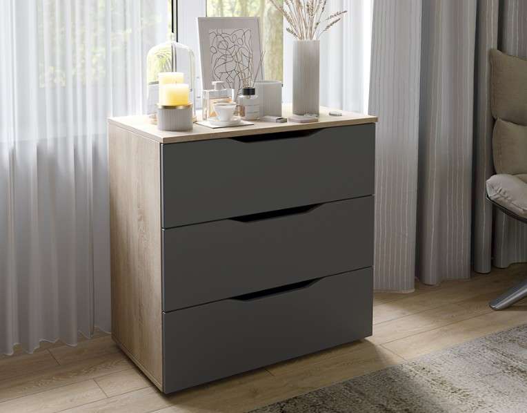Оригинальный комод с тремя ящиками для хранения одежды и различных вещей.